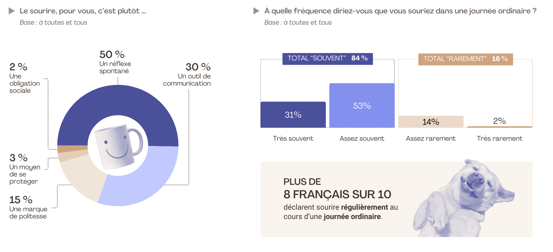 - 8 Français sur 10 déclarent sourire régulièrement au cours d’une journée ordinaire, dont 31 % « très souvent » ;