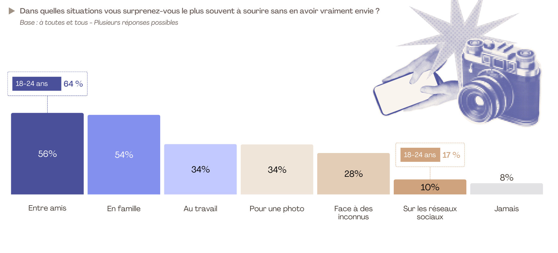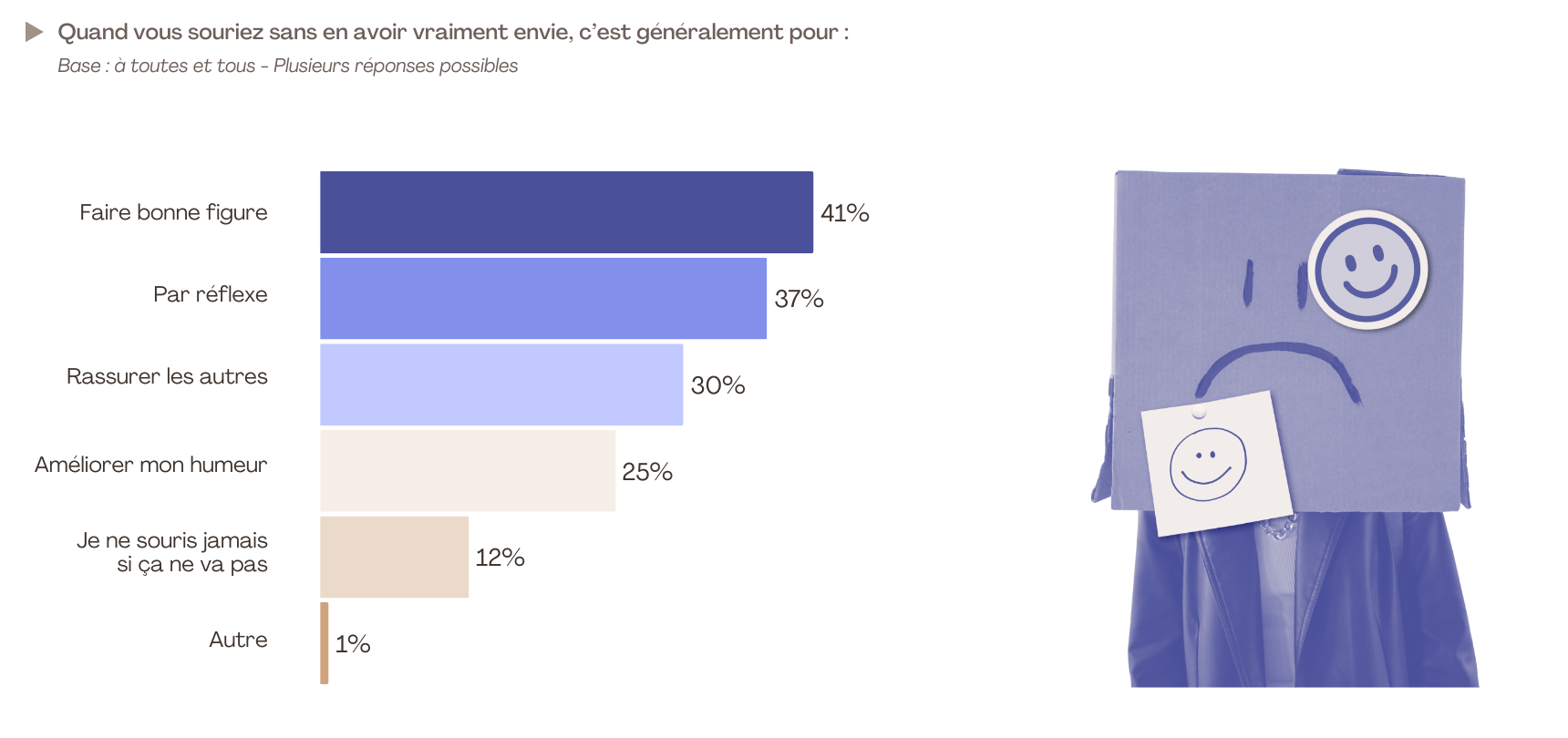 Un quart des Français (28 %) reconnaissent également des sourires forcés face à des inconnus. Le sourire, symbole de convivialité, peut donc devenir une façade sociale.